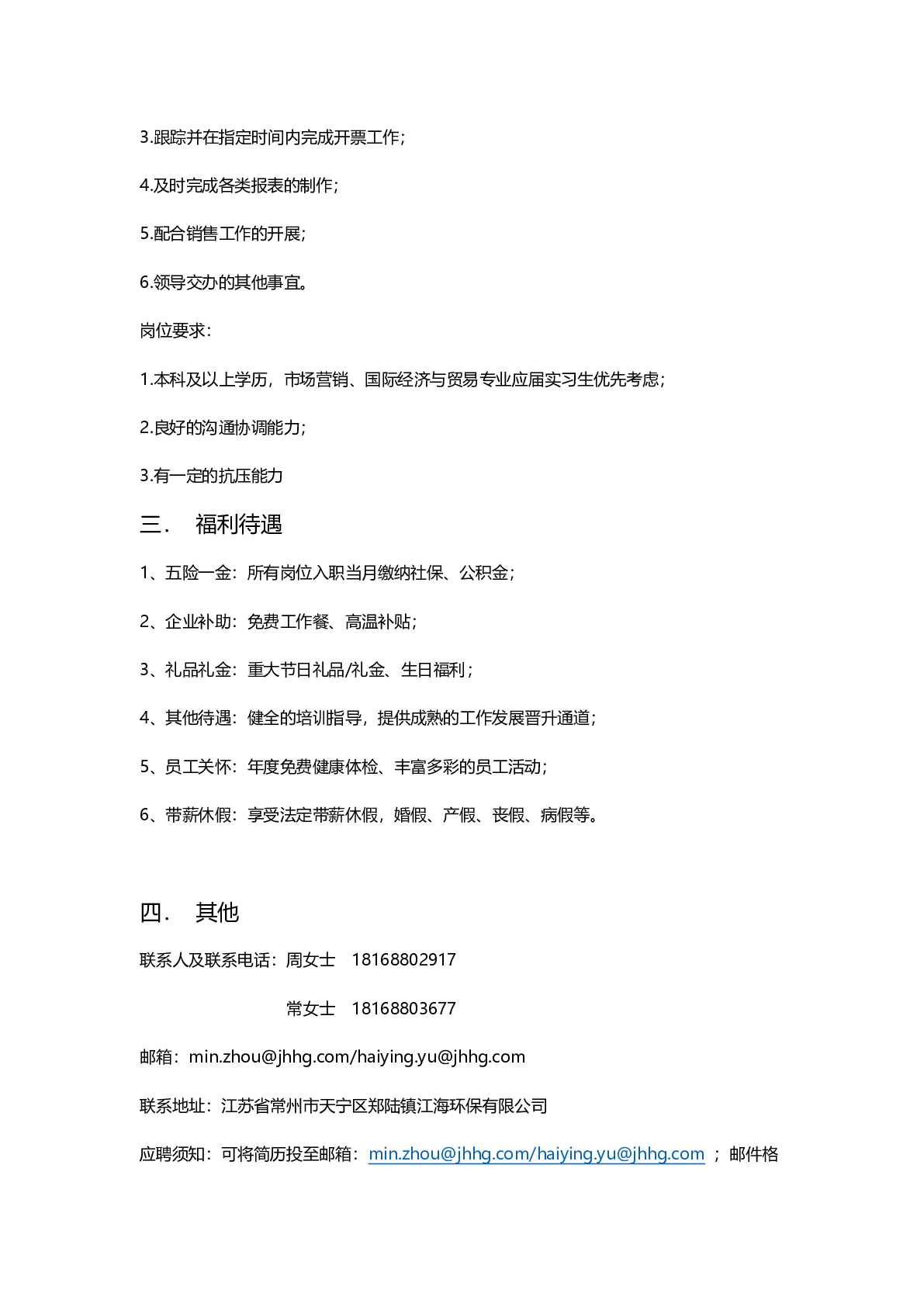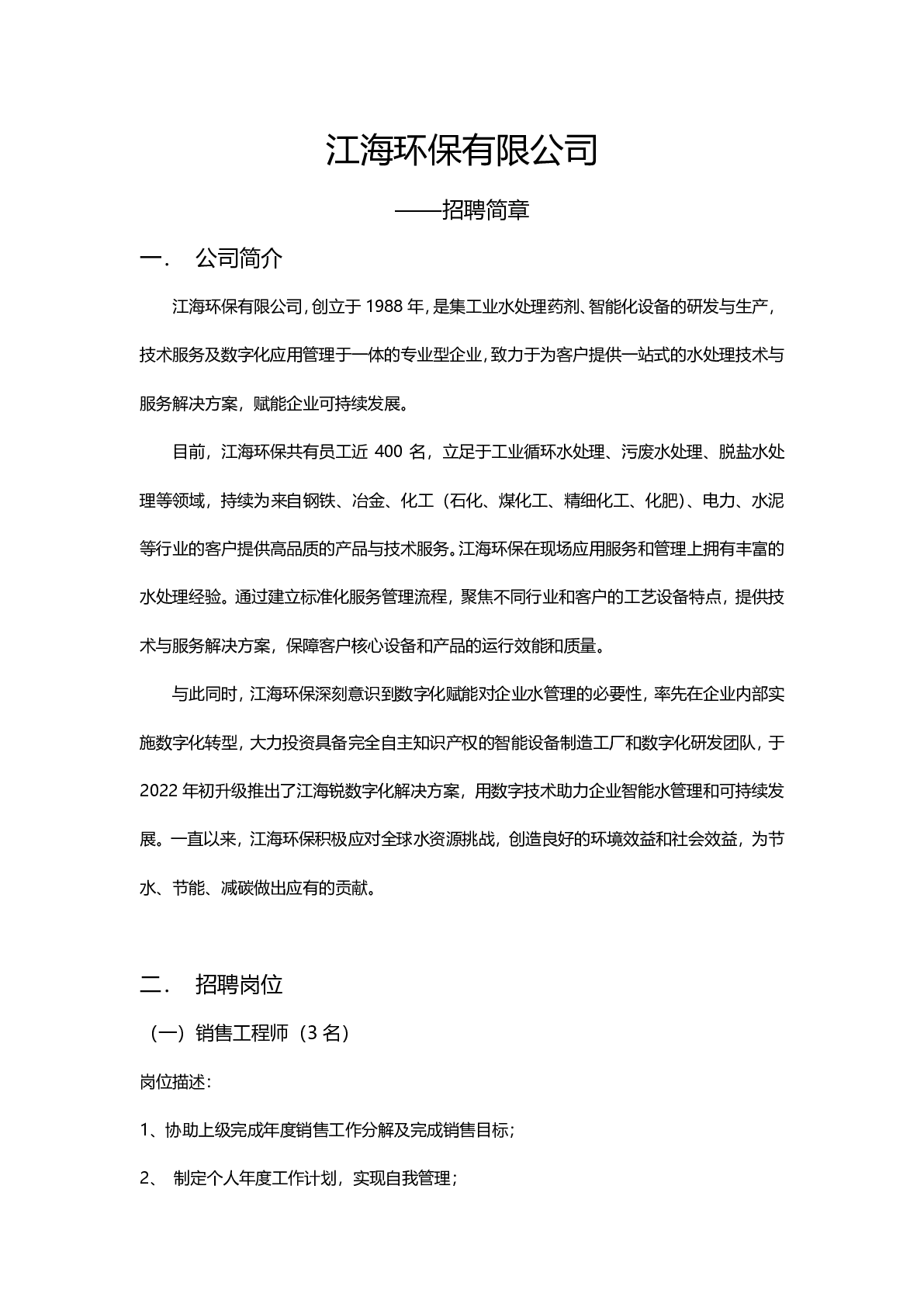 江海环保有限公司招聘简章