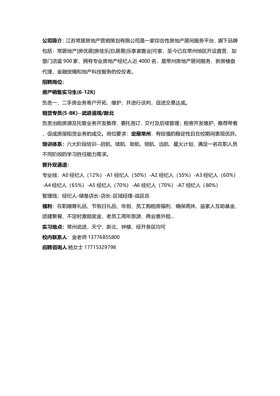 江苏常居房地产营销策划有限公司招聘简章